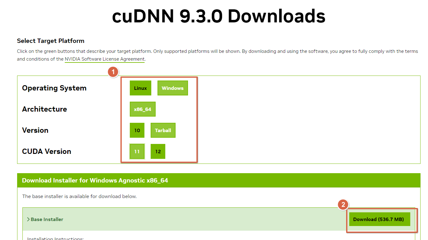 cudnn 또한 원하는 버전을 다운로드 한다 (cudnn 버전에 따라 지원하는 cuda 버전이 다르기 때문에 주의하자)